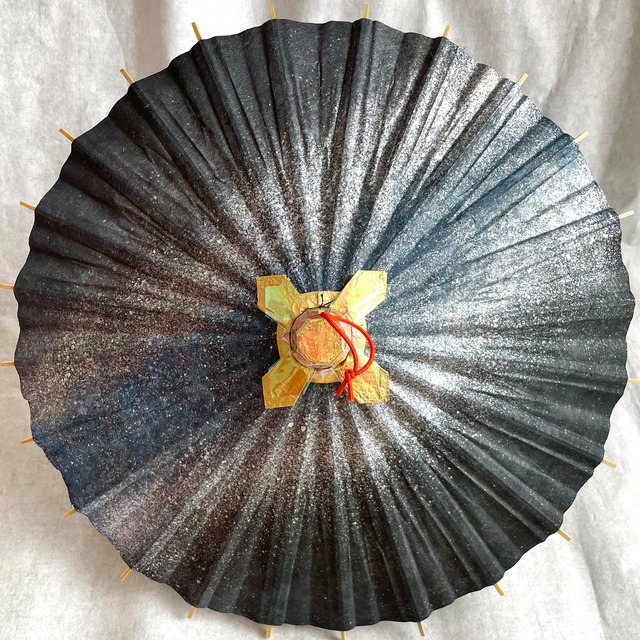 ☆ご注文頂いてから約10日で発送いたします。 ☆竹の飾り台をお付けしますので、和傘を差してご利用いただけます。 ☆ゆうパックの希望時間は画面下のオプションからお選び下さい。 ************************** このミニ和傘は、山形県の伝統工芸品『山形和傘』の職人である古内清司氏(故)から技術を教わって作成したものです。 【デザインについて】 七夕や流星群など、星空が綺麗な夏にぴったりな作品。 星雲のような無数の煌めきを施した和傘。広げればお部屋のなかでも星空を観ている気分に… 当店のミニ和傘の中でも上位の売れ筋商品です。 天体関連のミニ和傘には他に「三日月とホロスコープ」もございます。 【ミニ和傘の使い方】 ・インテリアとして飾る ・ミニチュア畳と共に ・お香と楽しむのも良し ・ライトで照らして照明として使う ・傘の下にお茶菓子を置いて優雅なひと時に …などなど使い方色々! 和傘を身近に楽しみたい方、和雑貨が好きな方、工芸品に興味がある方におすすめです。 【セット内容】 ・ミニ和傘1本 ・飾り台(竹製) ※サイズ…全長約27cm 【注意事項】 ☆手描きのため、色味や配色が写真と多少異なります。可能な限り写真と同じように仕上げますが、予めご了承ください。 ・この商品はハンドメイドです。丁寧に仕上げていますが、多少色ムラや傷などがございます。 ・このミニ和傘は防水ではありません。水に触れると絵具が滲んでしまいます。水に気を付け、取り扱いを丁重にお願いいたします。 ・和紙を使用しているので、鋭利なものをお避け下さい。 ・湿気でカビが生えないようにご注意下さい。