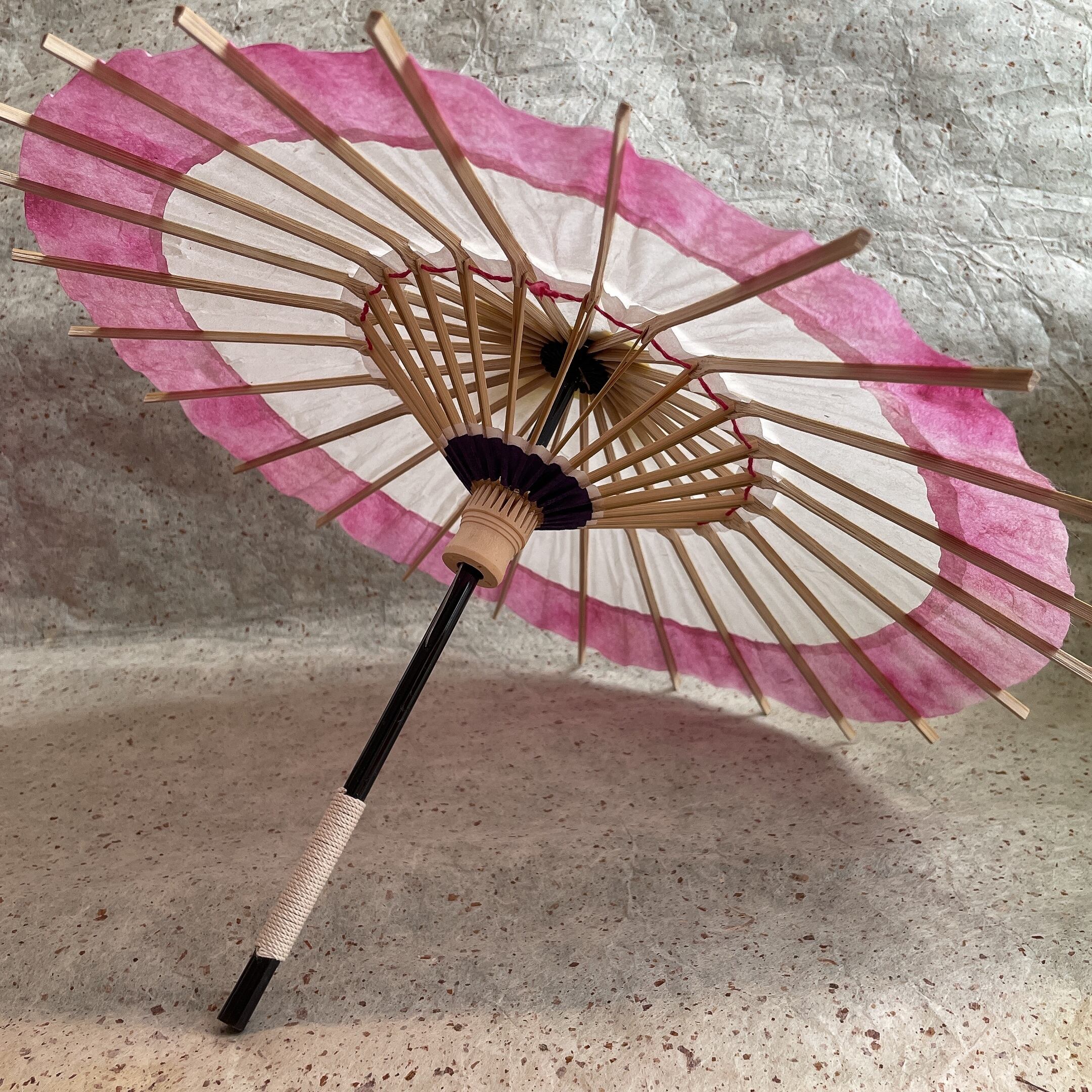 ・このミニ和傘は防水ではありません。水に触れると絵具が滲んでしまいます。水に気を付け、取り扱いを丁重にお願いいたします。