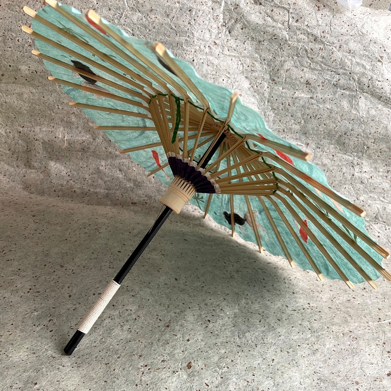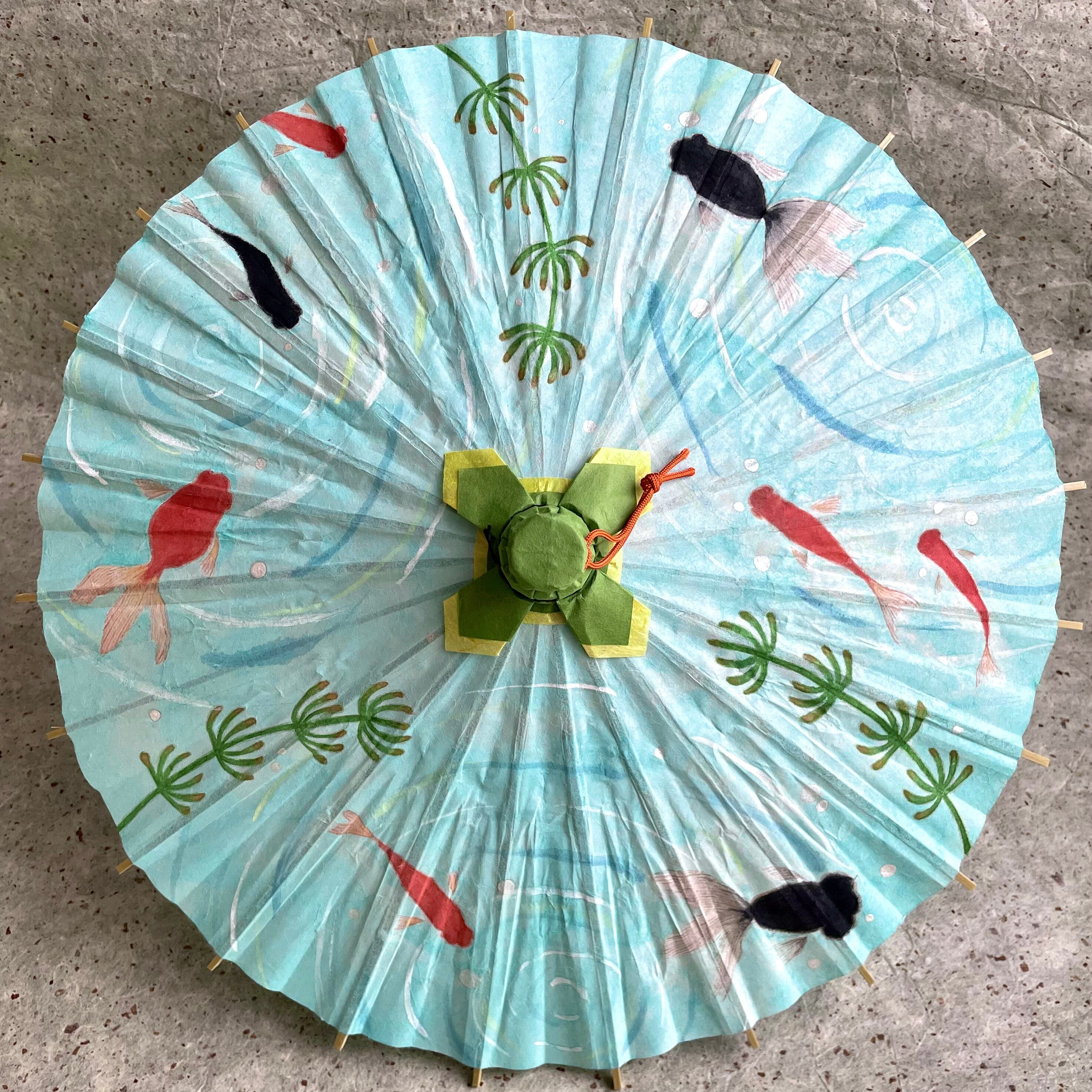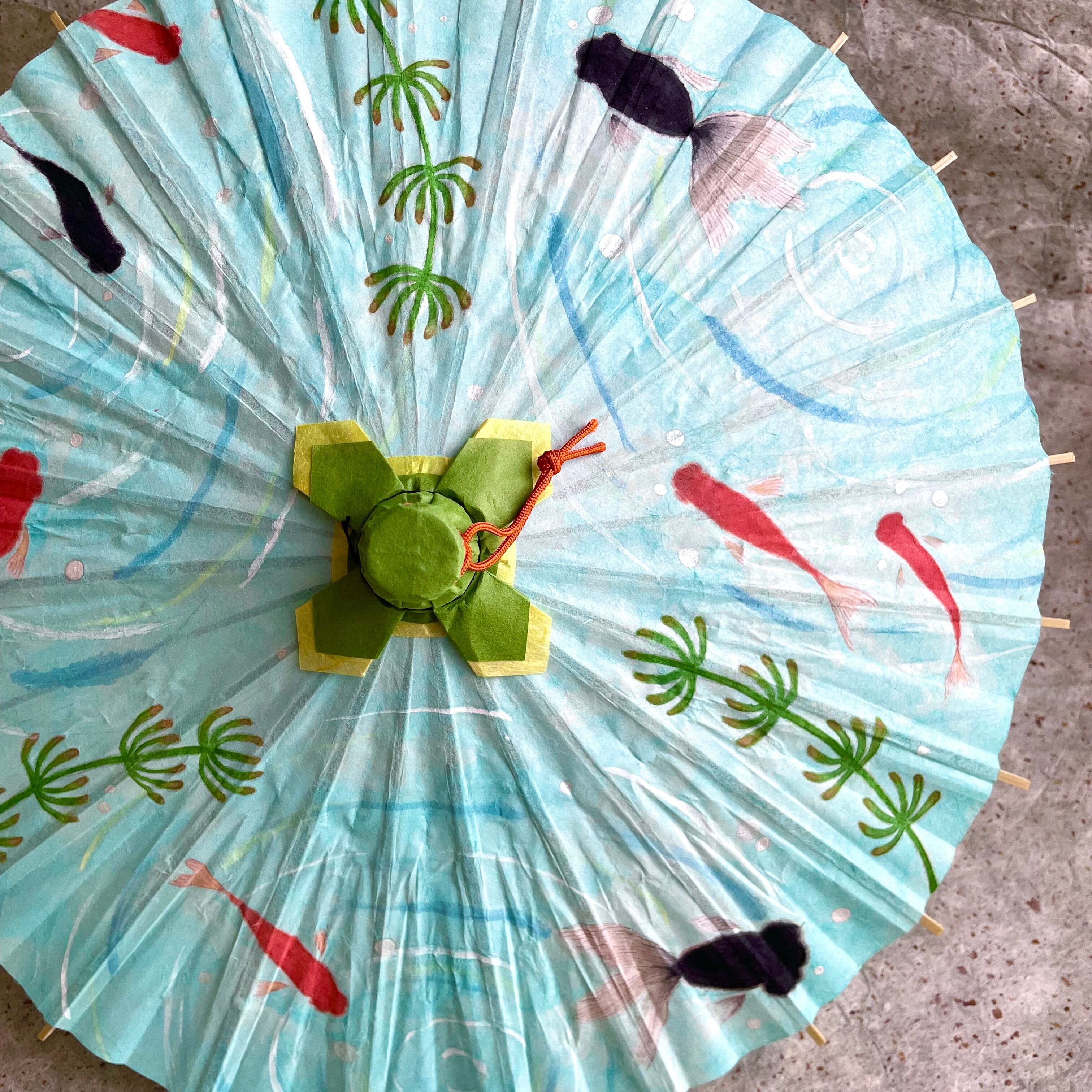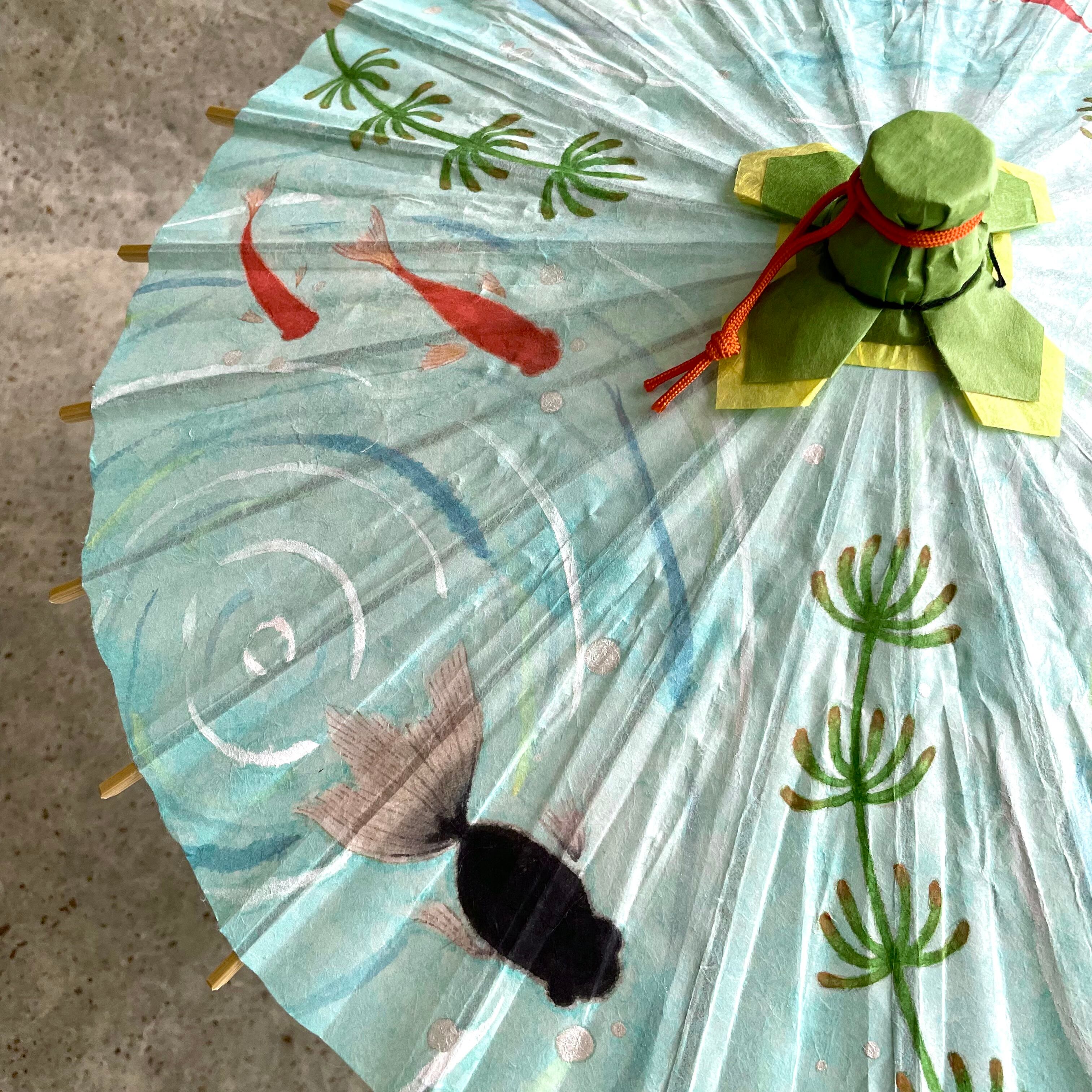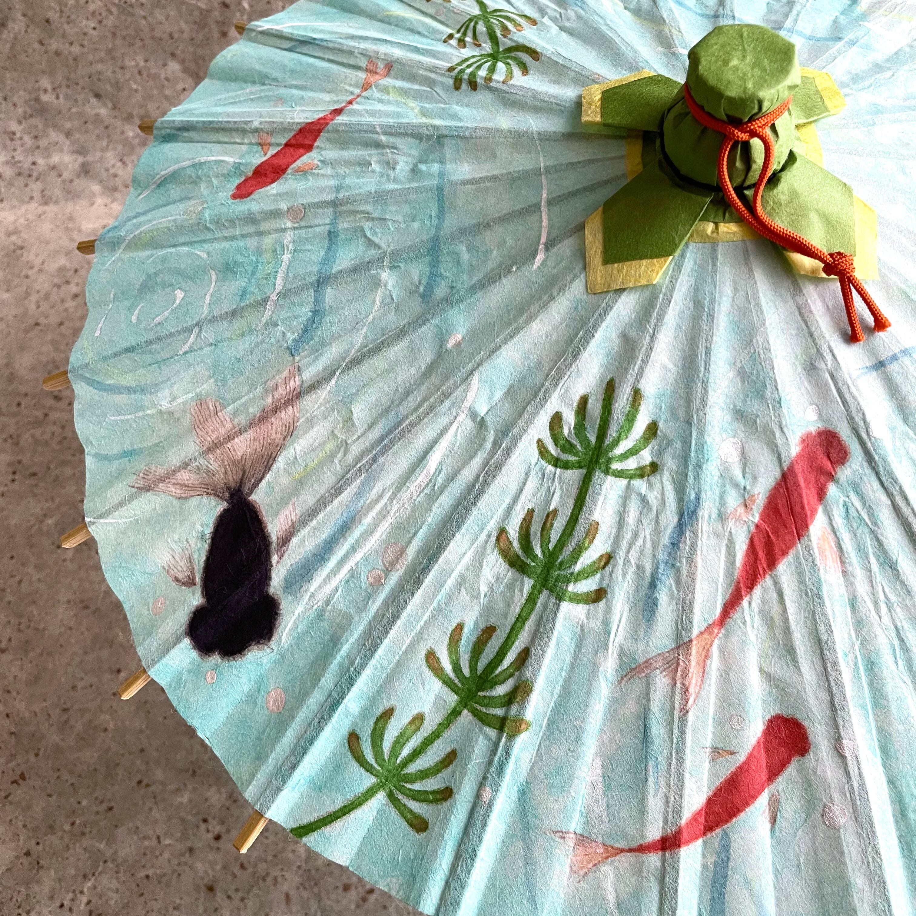 金魚鉢のように置いて楽しめるミニ和傘です。