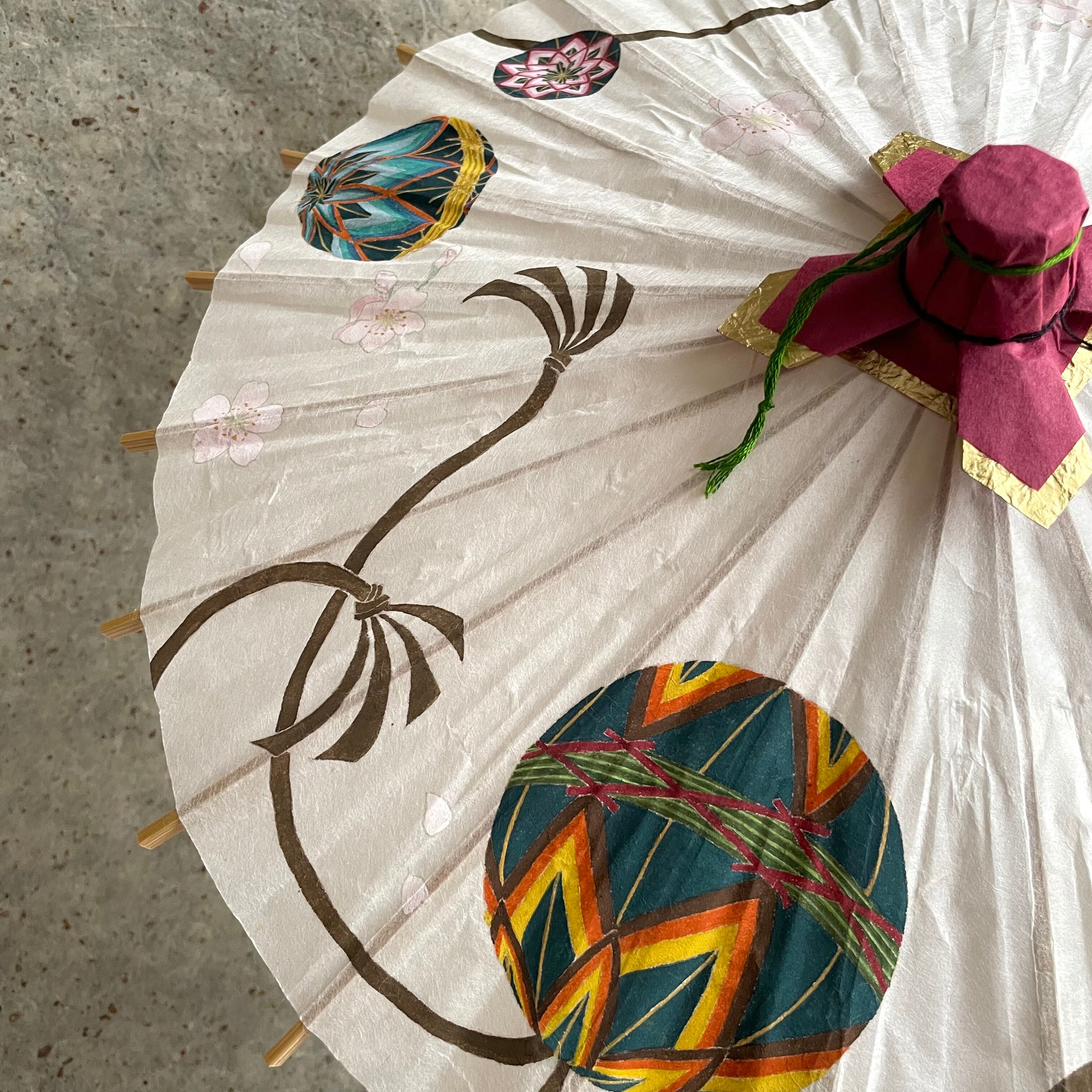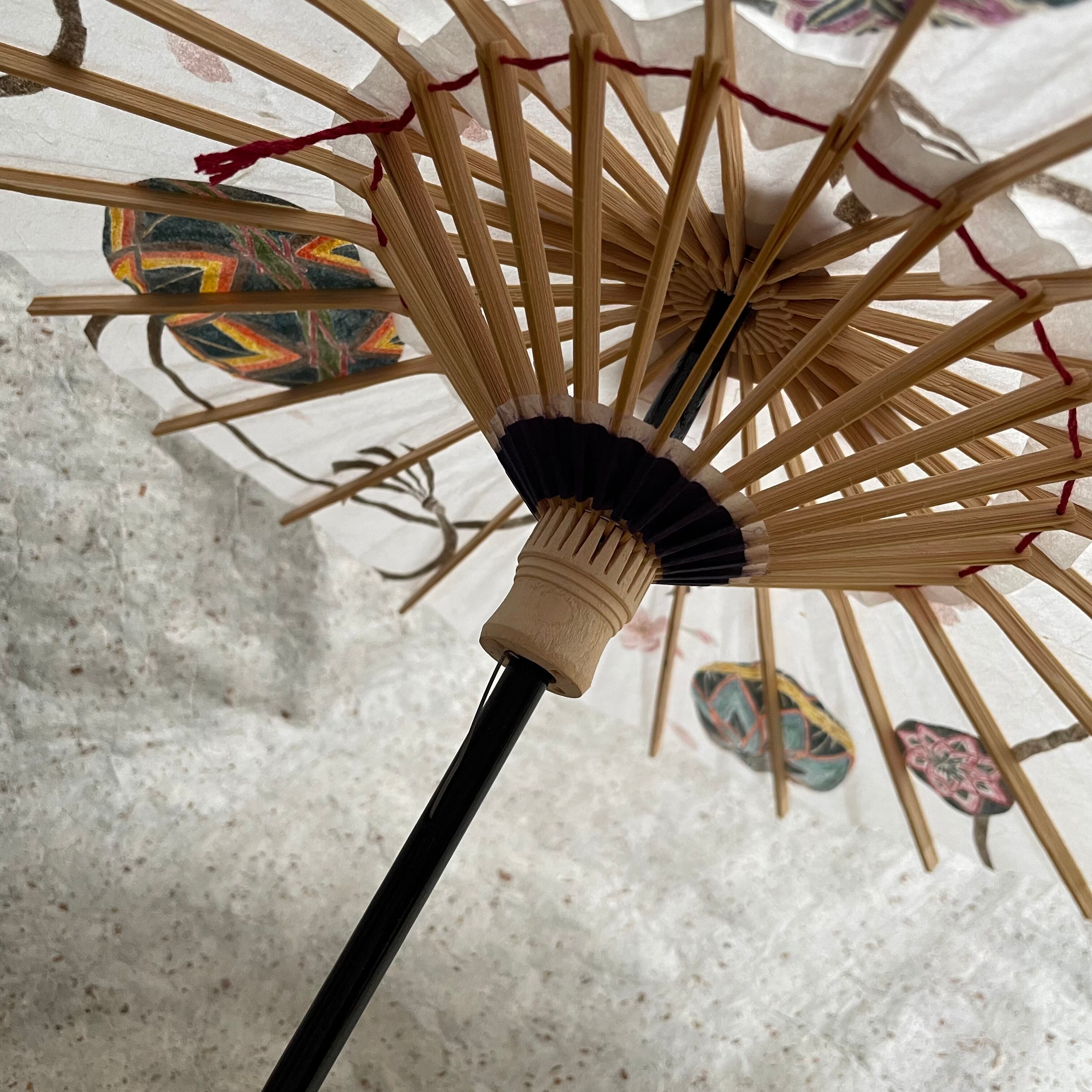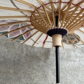 この作品は伝統工芸「山形和傘」の古内清司氏に技術を習って制作したインテリア用ミニ和傘です。和紙は福島県二本松市の上川崎和紙を使用しています。