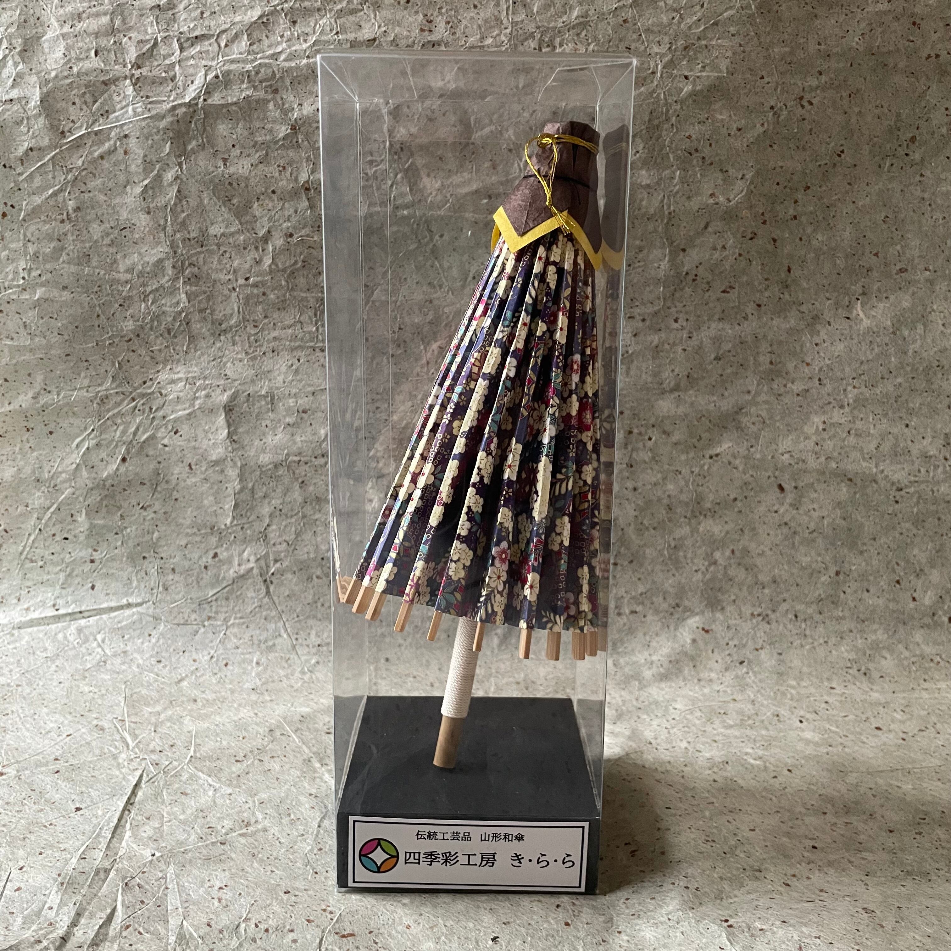 このミニ和傘は、山形県の伝統工芸品『山形和傘』の職人である古内清司氏(故)から技術を教わって作成したものです。