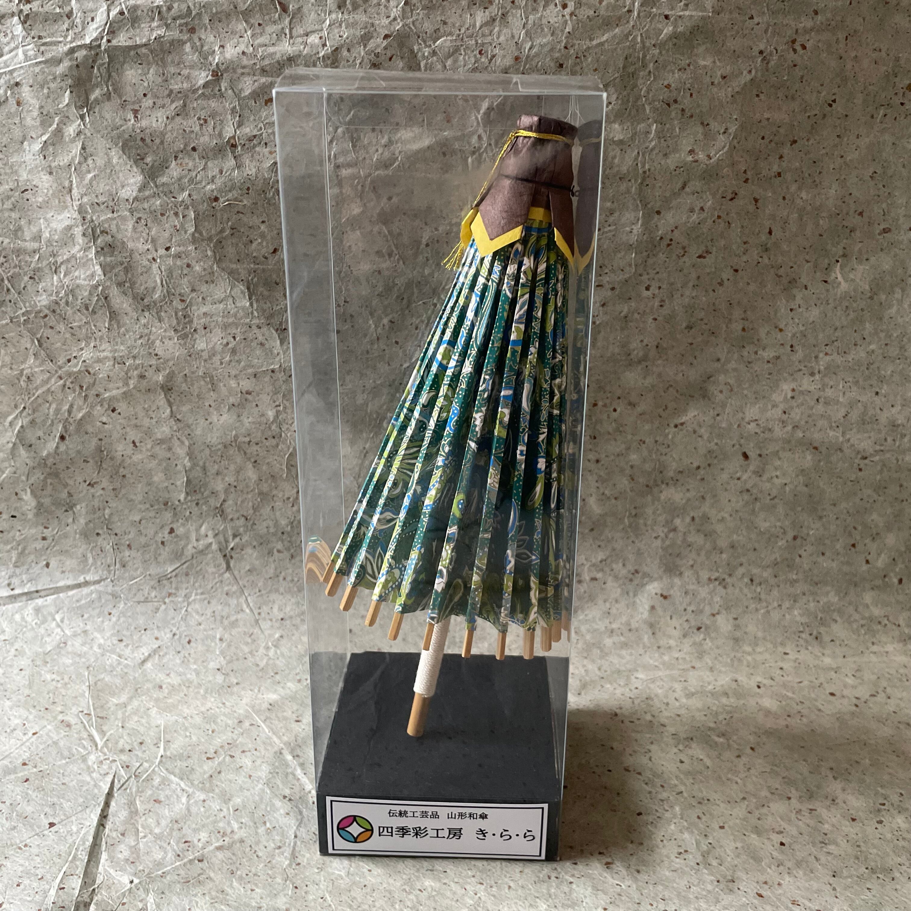 このミニ和傘は、山形県の伝統工芸品『山形和傘』の職人である古内清司氏(故)から技術を教わって作成したものです。