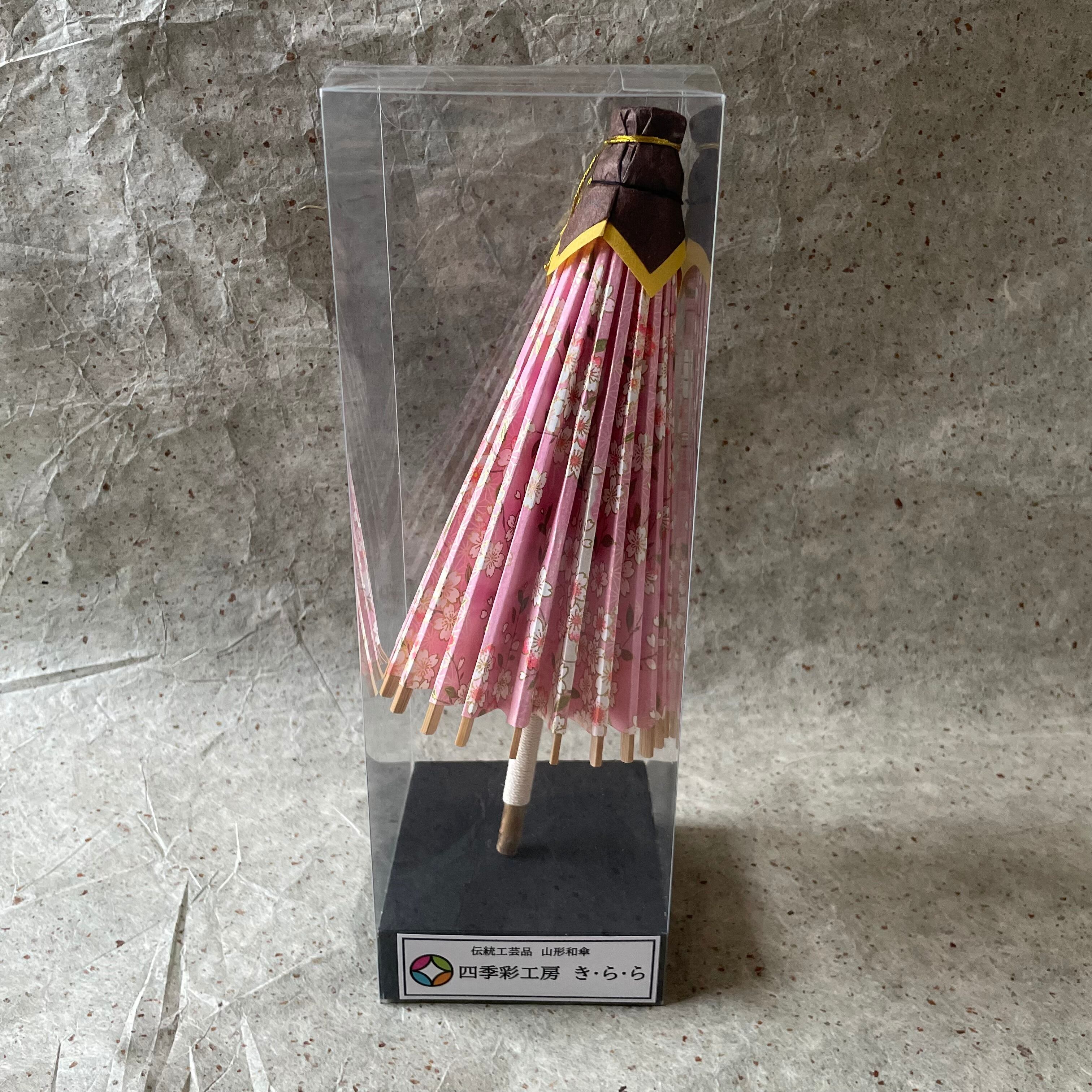 このミニ和傘は、山形県の伝統工芸品『山形和傘』の職人である古内清司氏(故)から技術を教わって作成したものです。
