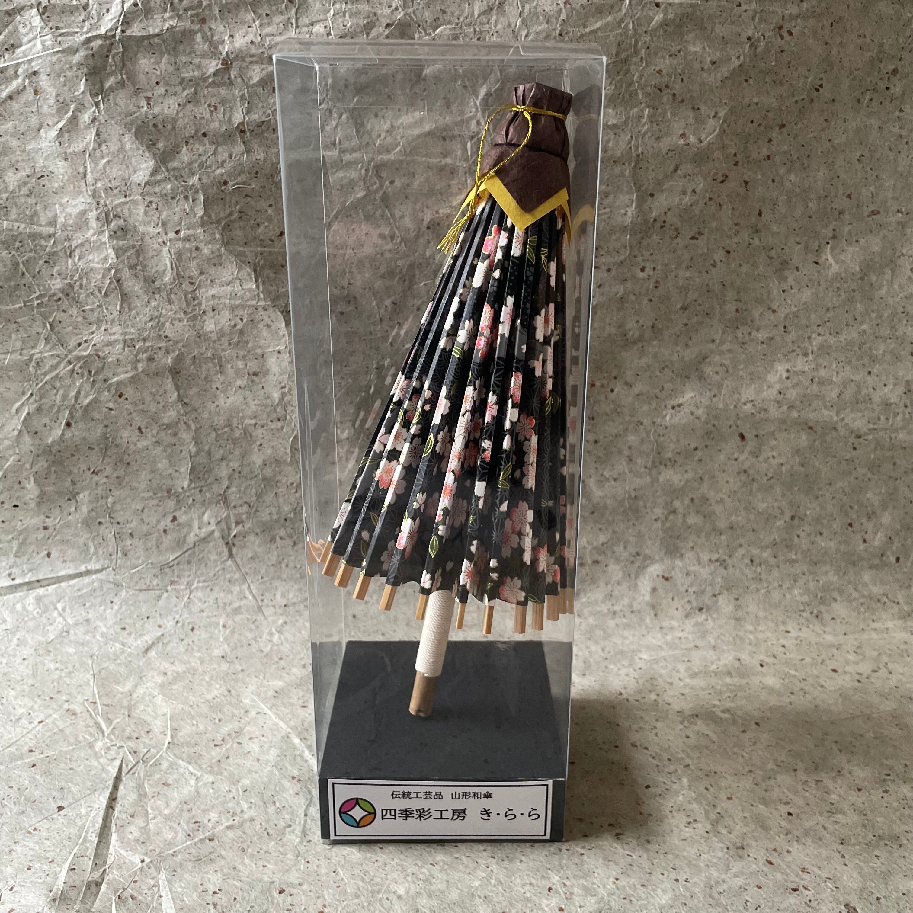 このミニ和傘は、山形県の伝統工芸品『山形和傘』の職人である古内清司氏(故)から技術を教わって作成したものです。