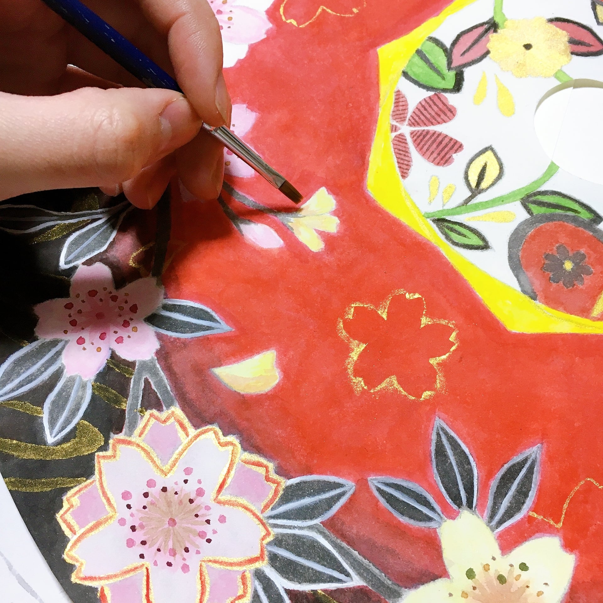 繊細なデザインであるため、他の絵付け傘の何倍もの時間を要します。私の師匠は手描きであることの感動を大事にしていたので、手間暇はかかりますがこれからも作り続けたいシリーズです。