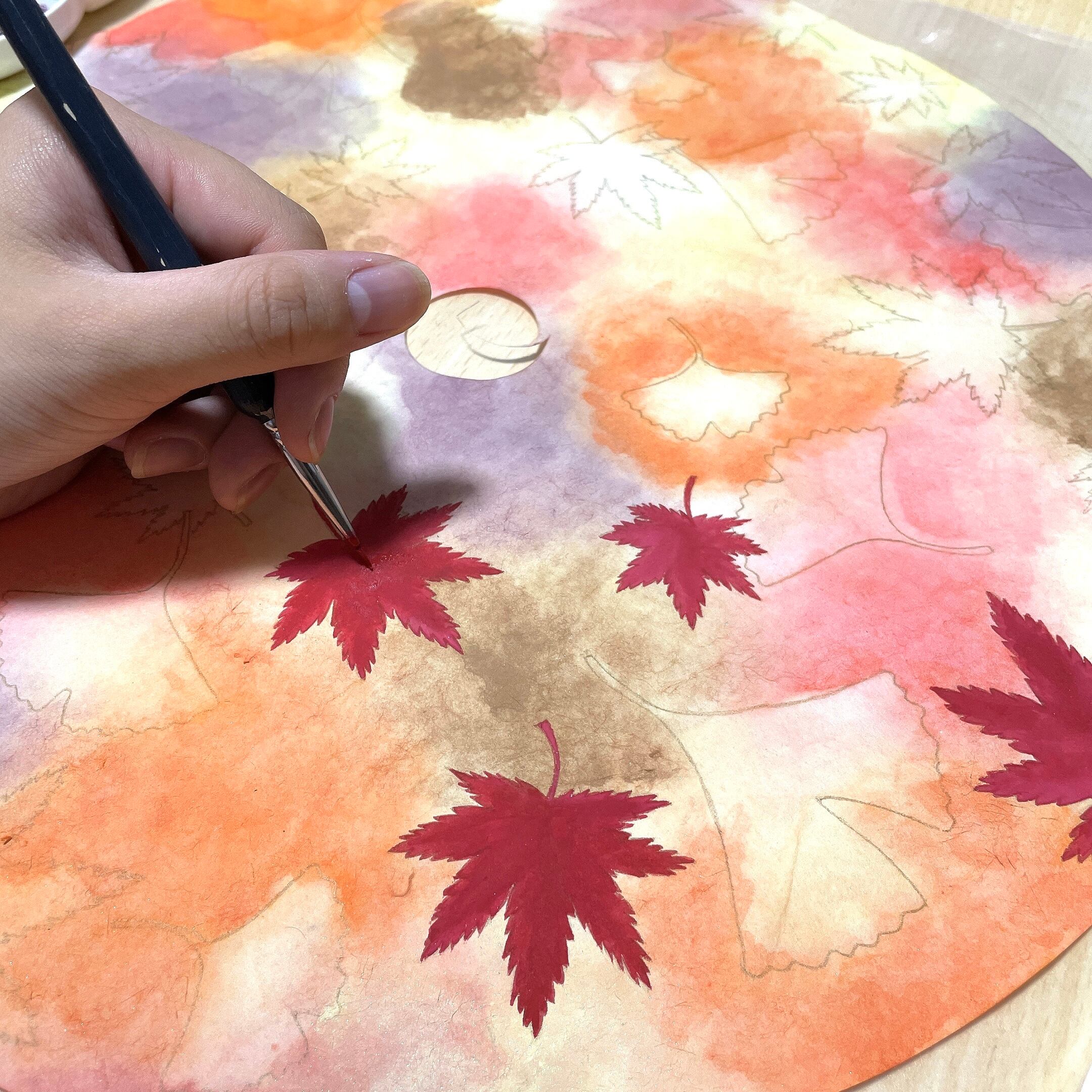 心を込めて一枚一枚丁寧に絵付けしています。ラメ入りの絵の具を使用しているので、きらきらと輝いて見えます!
