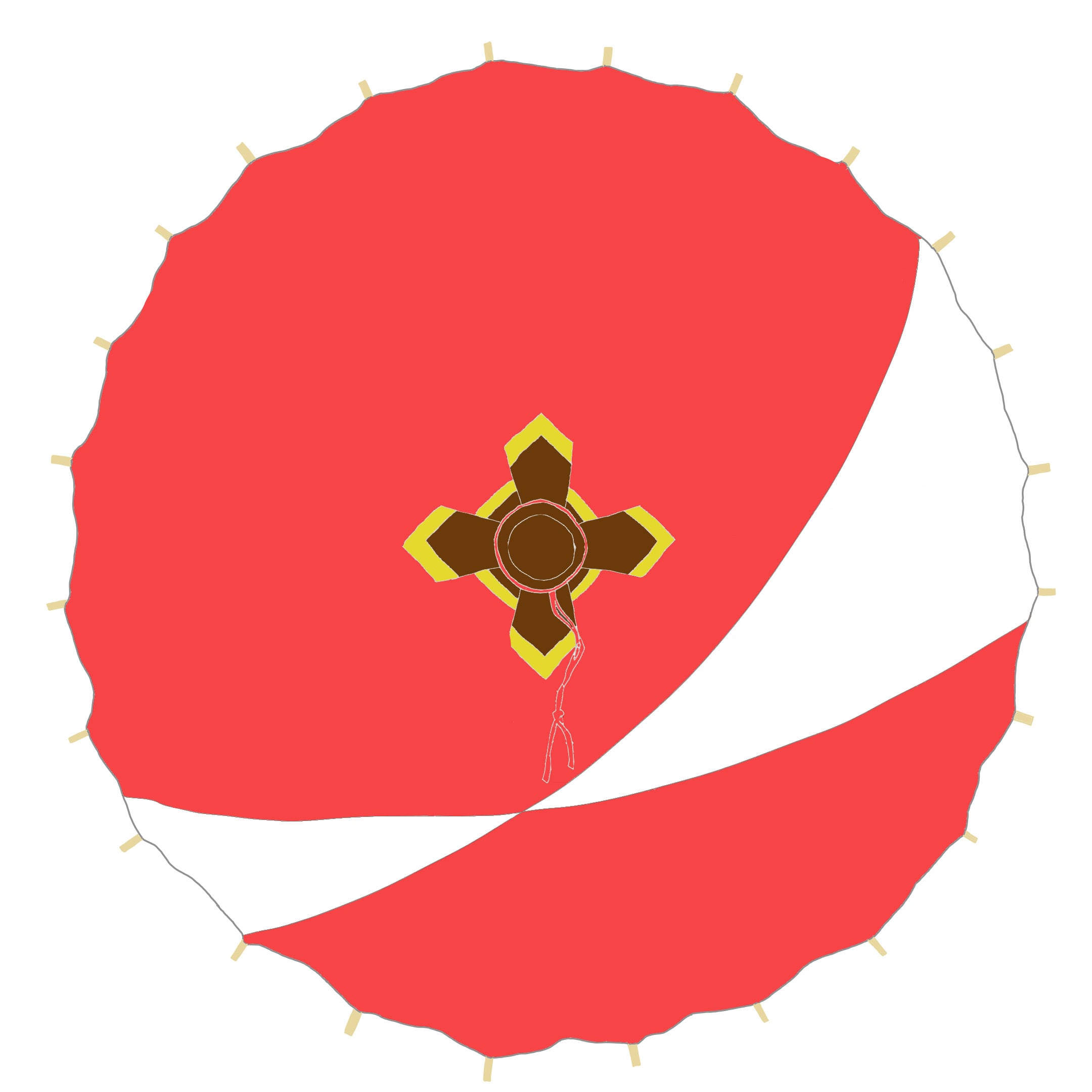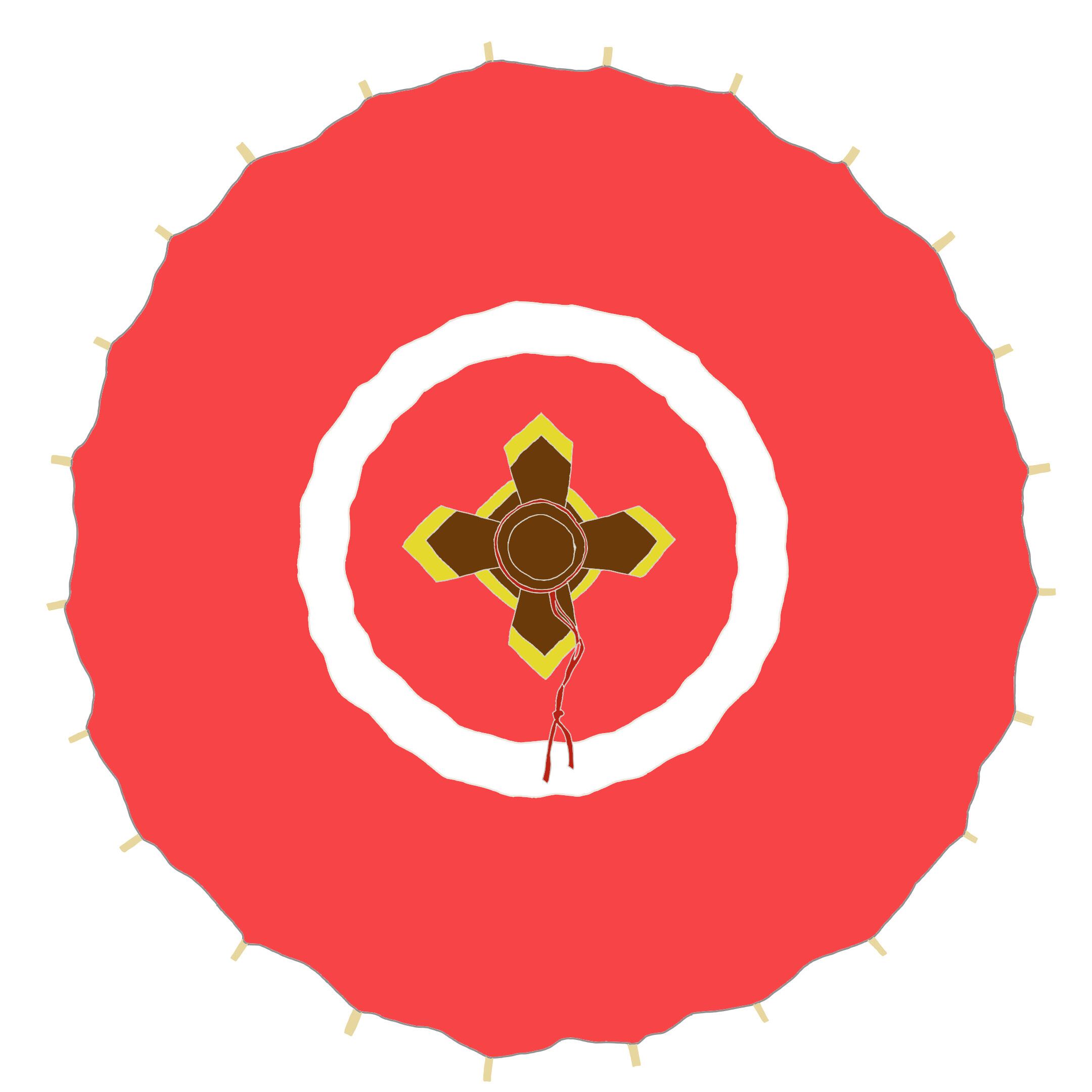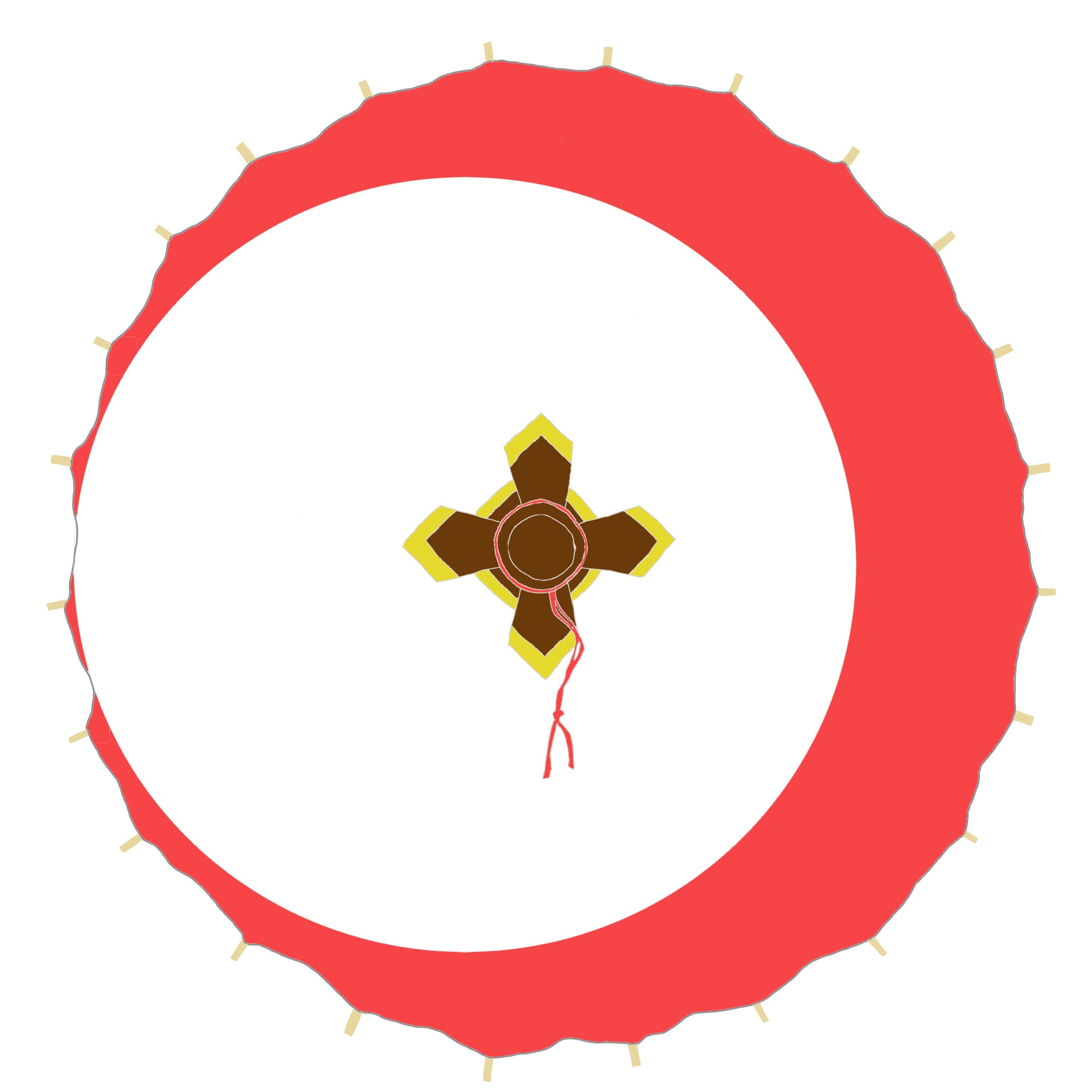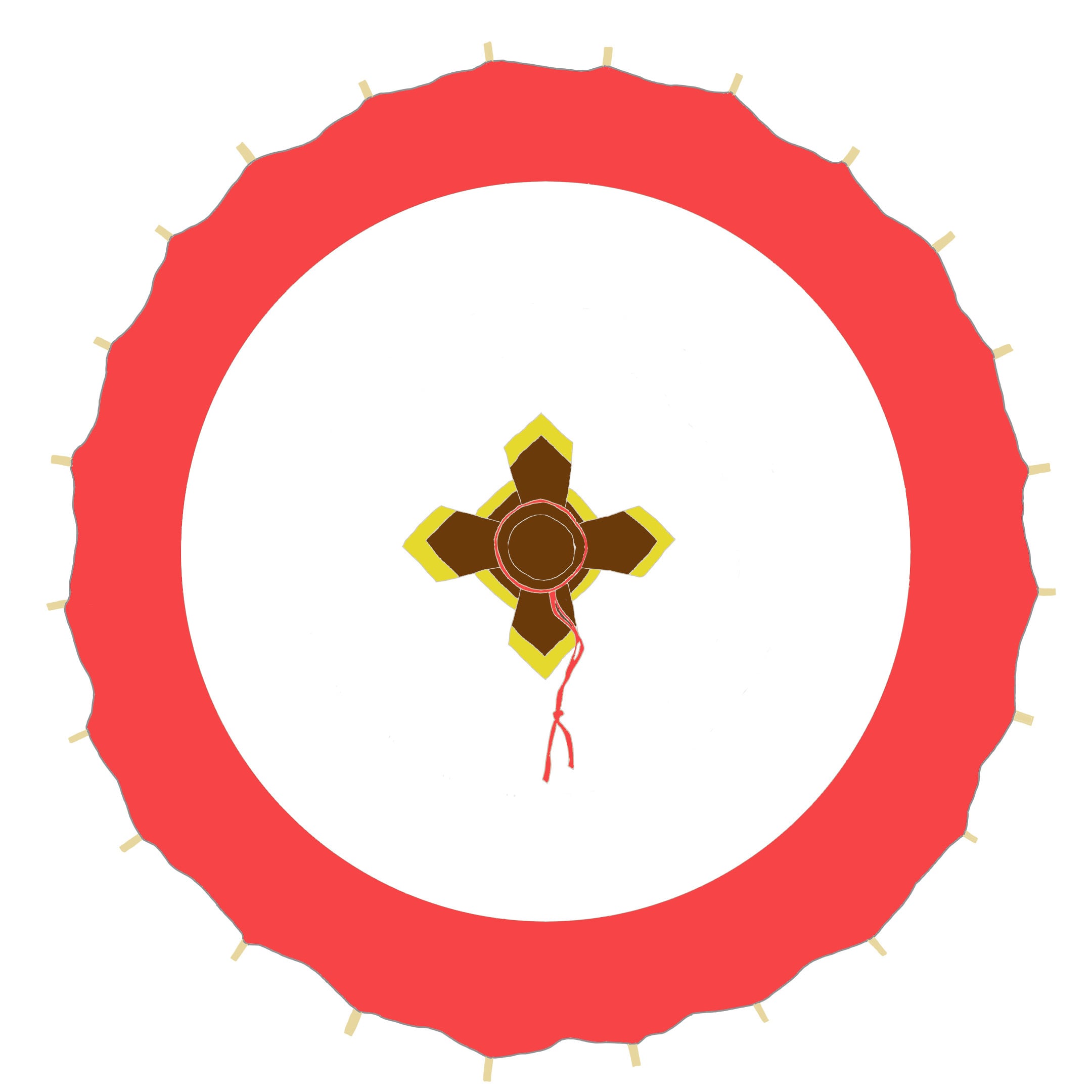 同心円を基調とした模様で中央に円が入っています。地域によっては「中入り」と呼ぶところもあります。